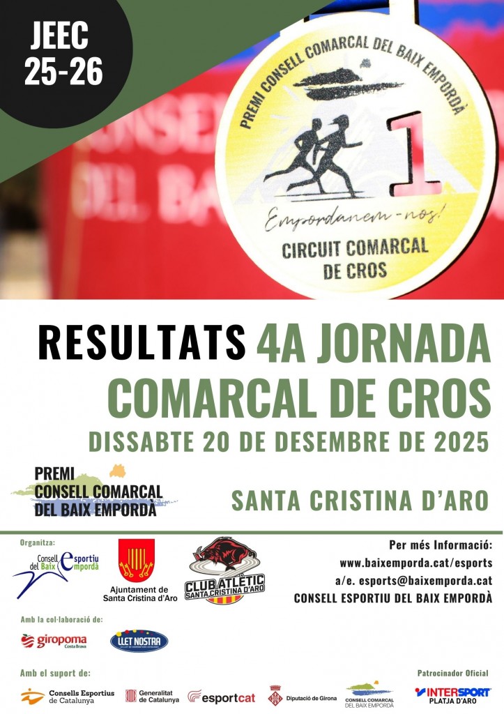 Aquí teniu la informació i el full d’inscripció en relació a la 4ª Jornada del Circuit Comarcal de Cros – Premi Consell Comarcal del Baix Empordà d’aquest proper curs 25-26, que es celebra el dissabte dia 20 de desembre a Santa Cristina d'Aro.