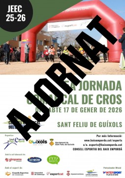 Ens sap molt de greu haver de fer-vos arribar aquest comunicat, on s’informa sobre l’ ajornament de la 5ª Jornada del Circuit Comarcal de Cros que s’havia de celebrar aquest dissabte, dia 17 de gener a Sant Feliu de Guíxols. El motiu és per la previsió meteorològica , ja que marca pluja al llarg del matí. Al considerar l’edat dels esportistes i la tipologia d’activitat que s’hagués portat a terme, pensem que el millor és ajornar-ho. També s’informa de...
