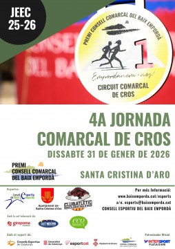 Aquí teniu la informació i el full d’inscripció en relació a la 4ª Jornada del Circuit Comarcal de Cros – Premi Consell Comarcal del Baix Empordà d’aquest proper curs 25-26, que es celebra el dissabte dia 31 de gener a Santa Cristina d'Aro. CATEGORIES DISTÀNCIA HORA VOLTES Juvenil / Cadet Femení (2008-2009) (2010-2011) 3.000 m. 10:00 h 4 G Juvenil / Cadet Masculí (2008-2009) (2010-2011)...